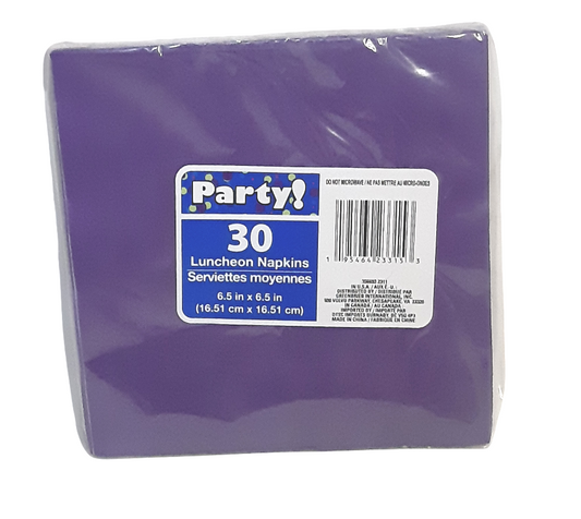 Purple Party Napkins, Small Napkins, Birthday Napkins, 10 Inches x 10 inches Square