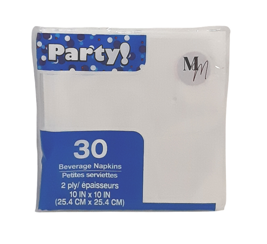 White Party Napkins, Small Napkins, Birthday Napkins, 10 Inches x 10 inches Square