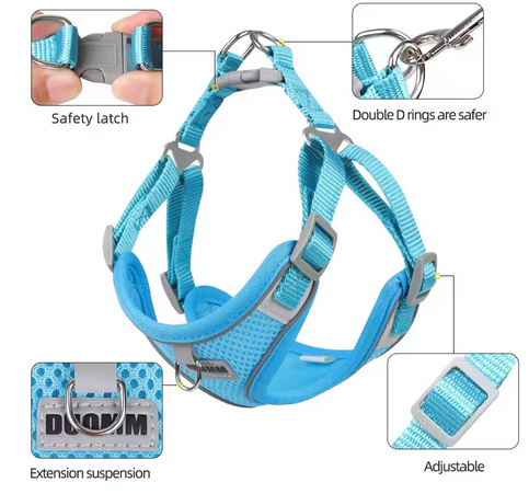 PINK Step in Dog Harness and Leash Set, LARGE SIZE, Cloth Backing, Mesh Front Harness with Reflective Trim
