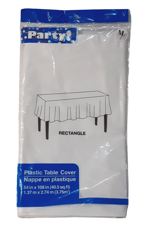 White Plastic Tablecloth 54 x 108 Inch, Disposable Table Cloth, Rectangle Party Table Cover