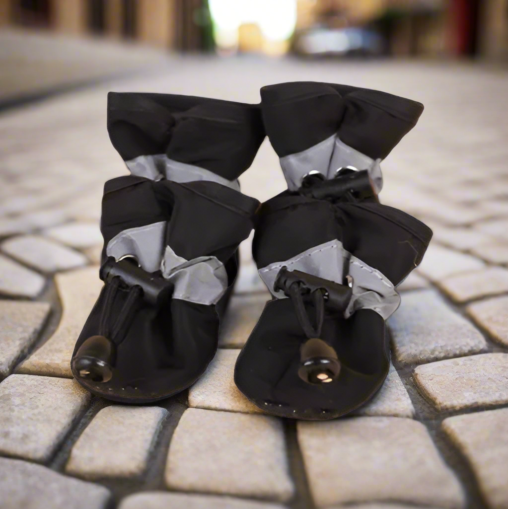 Set Includes: 4 BootiesProtect your pup's paws in style and comfort with our 4-piece set of black dog booties—perfect for winter weather and nighttime walks.