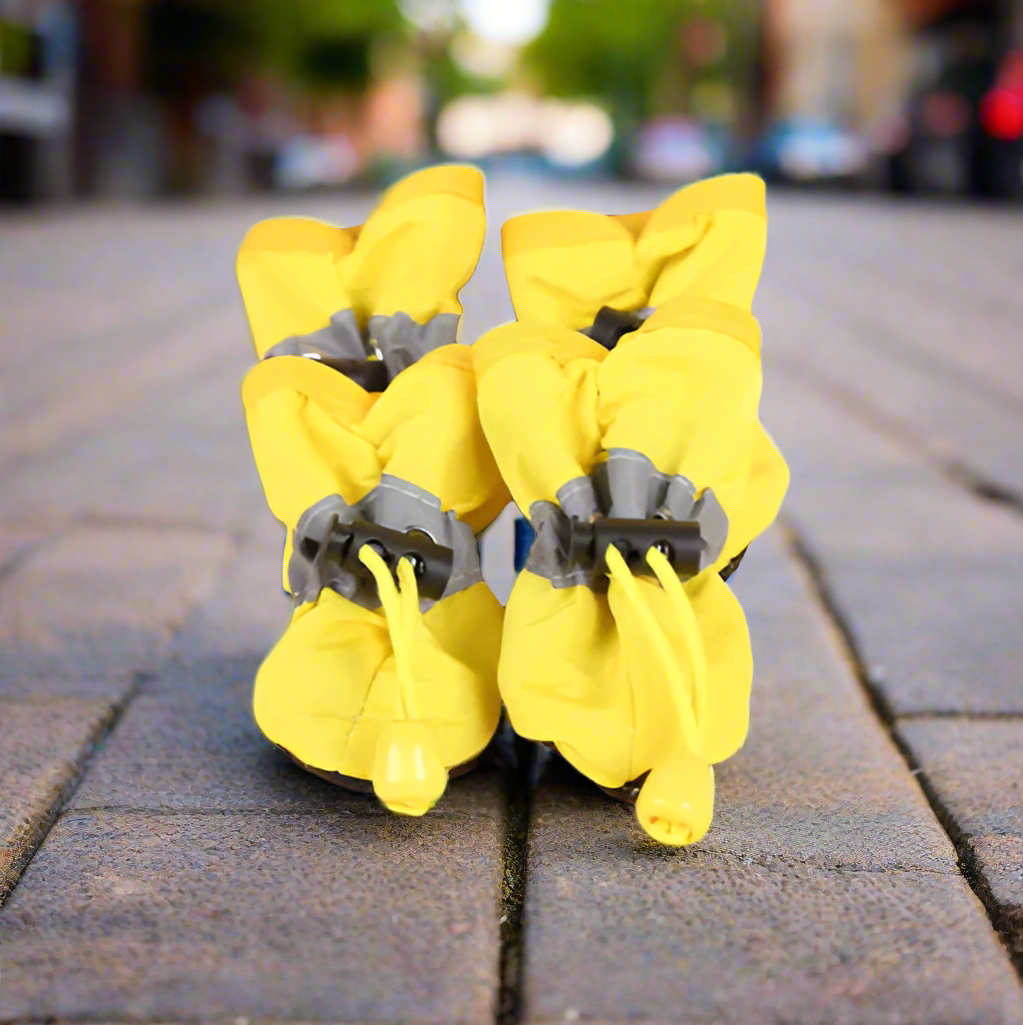 4pc Set of Yellow Dog Shoes, Winter Boots for Dogs, Puppy Dog Booties, Paw Covers