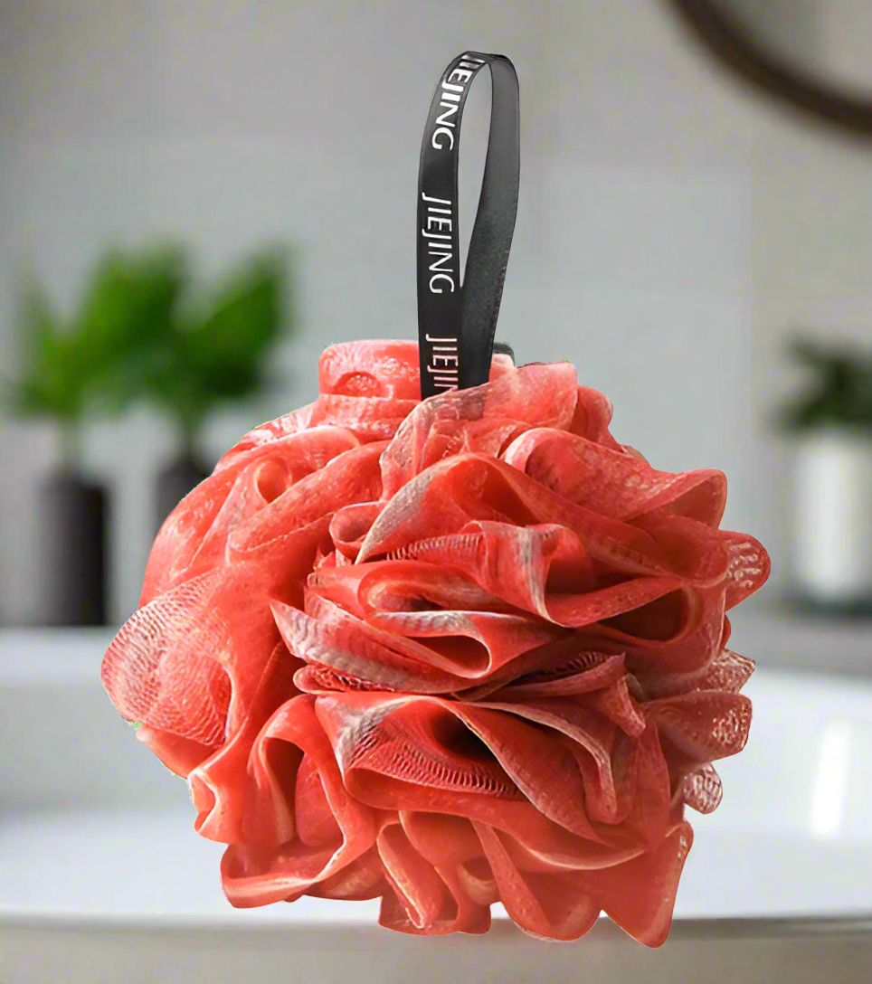 Luxurious Bath Sponge Pouf in Wine, Body Scrubber, Bathing Accessories, Nylon Pouf