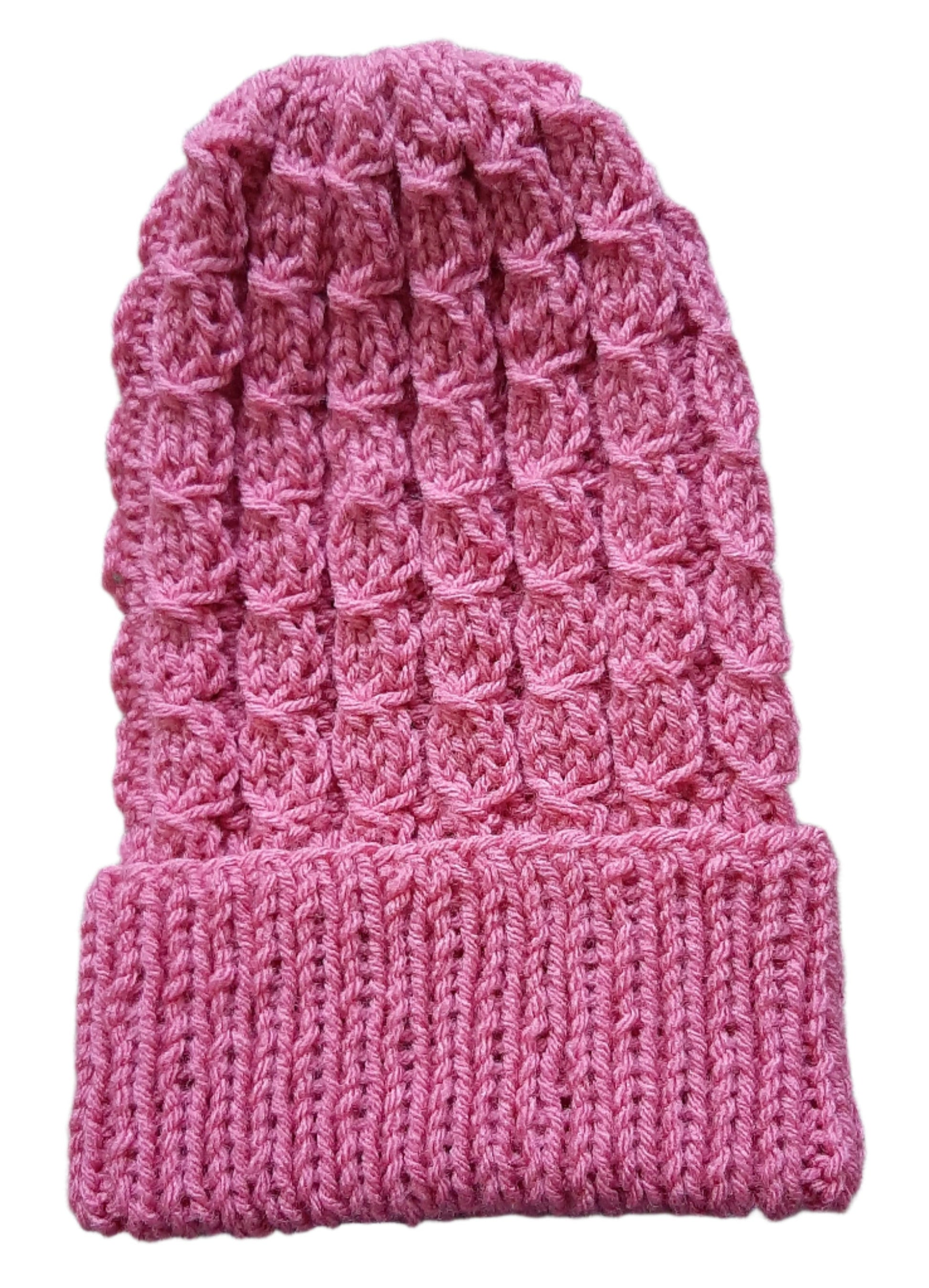 Handmade Knitted Slouchy Hat with Twists Design, Bubblegum Pink